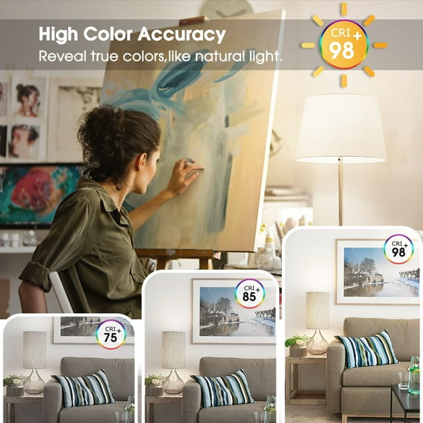 9w Full Spectrum Led Light Bulbs 5000k Daylight White 85w Equivalent Sunlike Natural Light 800lm E26 Base A19 Eye Caring 4 Pack Walmart Ca